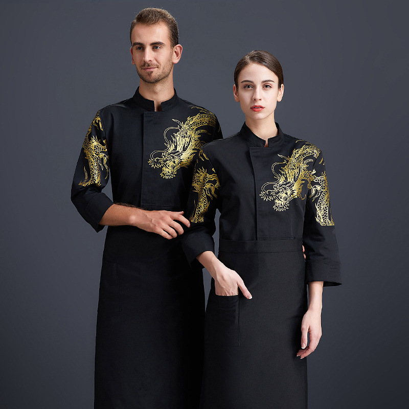 Pakaian koki lengan panjang pria dan wanita, pakaian dapur kantin hotel katering dapur koki pakaian kerja musim gugur dan musim dingin Toko Kue