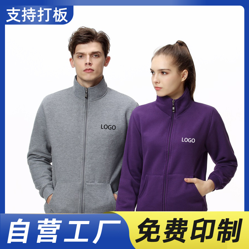 Sweter lengan panjang kerah berdiri fleece-lined musim gugur dan musim dingin sweter kemeja budaya logo kustom kardigan lengan panjang ritsleting pakaian kerja jaket disesuaikan