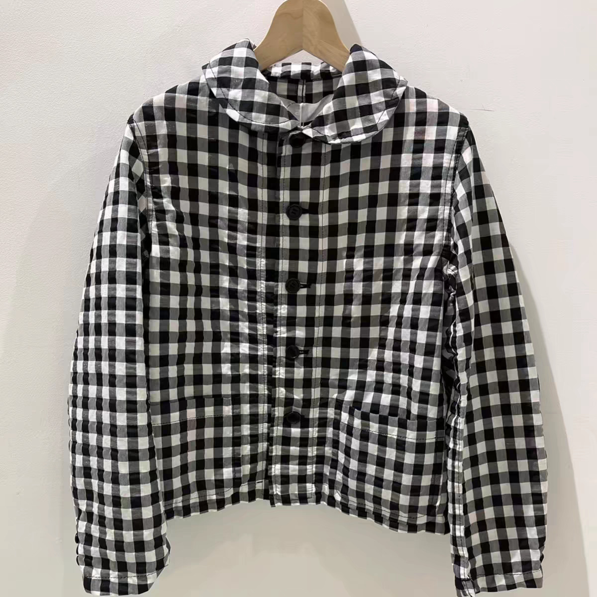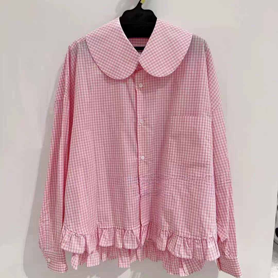 CDG KZYU 25春夏新款格子衬衫娃娃领外套宽松长袖开衫上衣女款潮