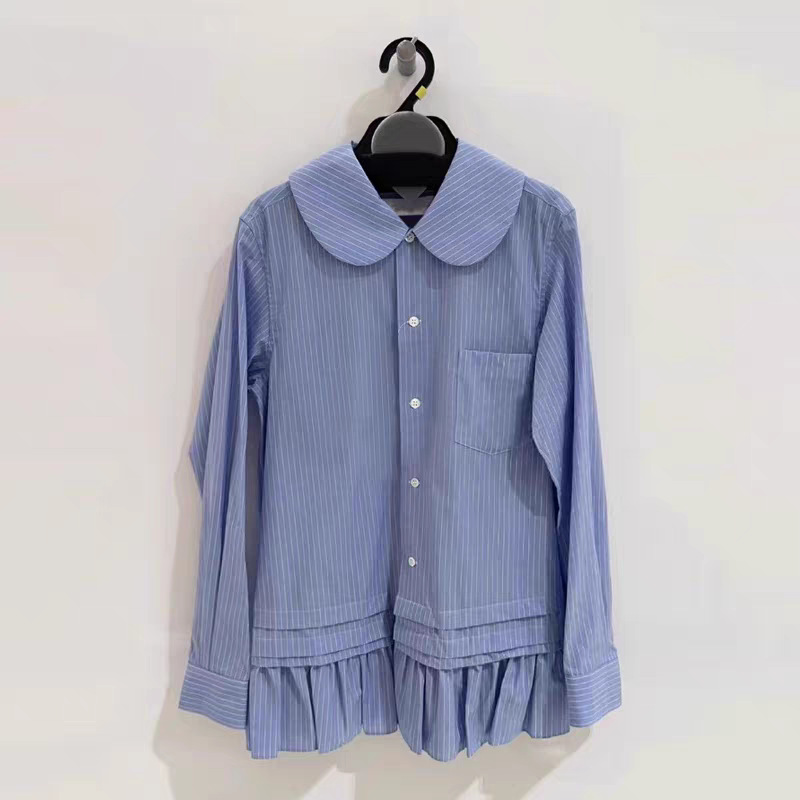CDG KZYU 25春夏日系新款蓝色条纹压褶衬衫长袖开衫衬衣女款上衣