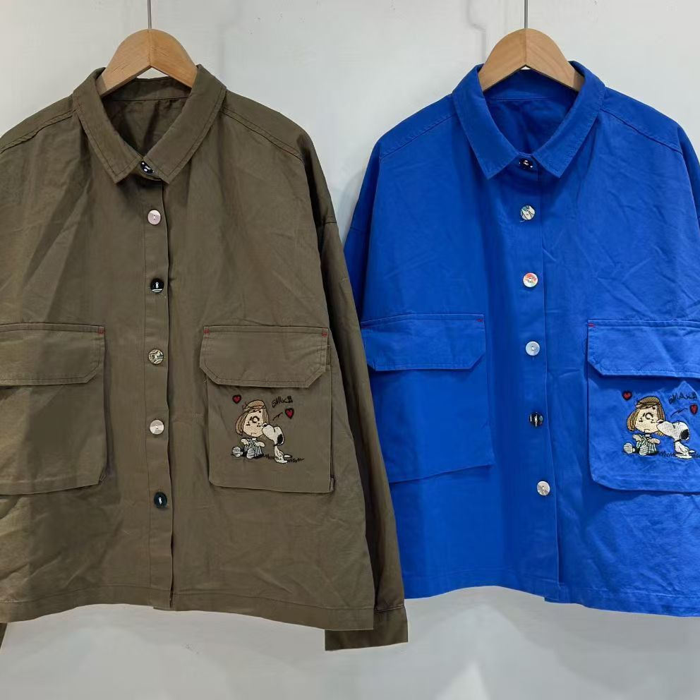 2025秋季新款女翻领日系棉衬衫宽松衬衣上衣开衫双口袋休闲款长袖
