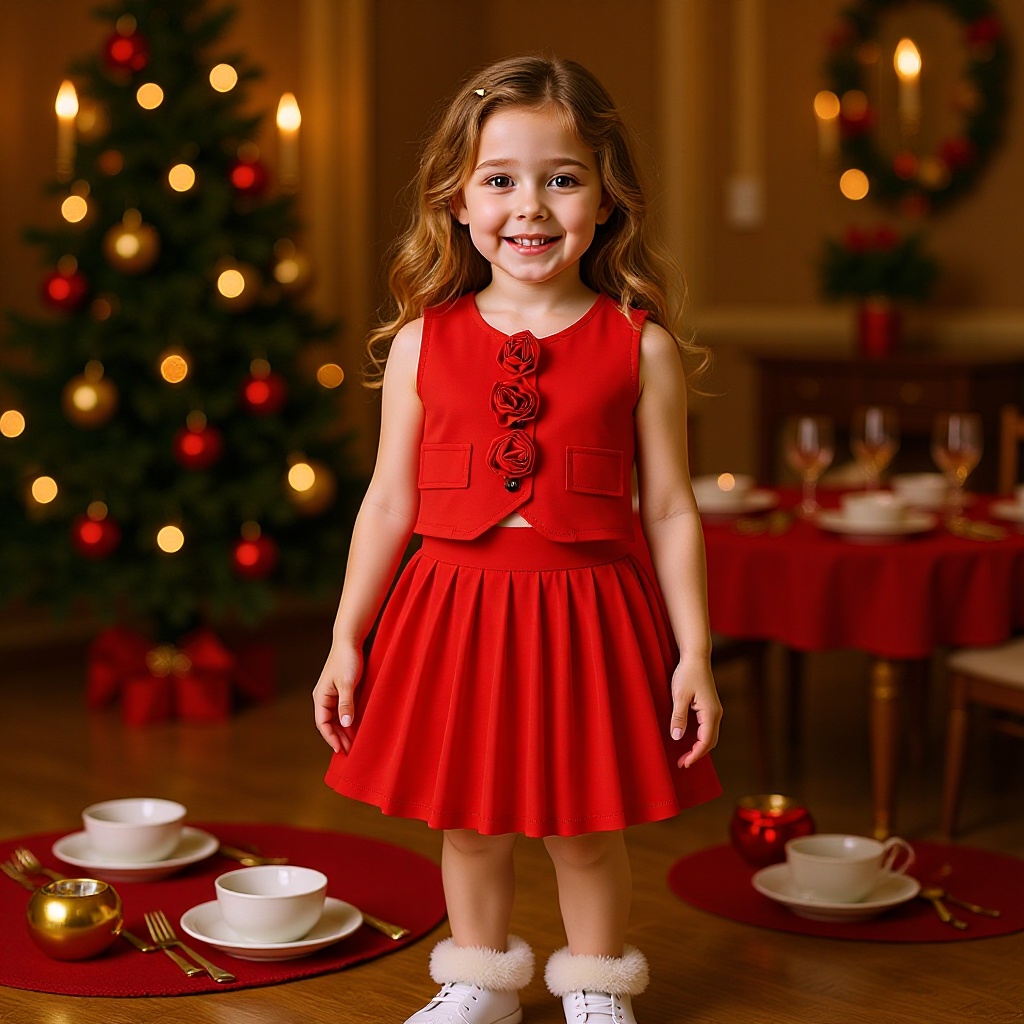 Perdagangan Luar Negeri Luar Negeri Model Baru Musim Panas Anak Perempuan Tanpa Lengan Tiga Dimensi Bunga Mawar Rompi Set Rok Lipit Warna Solid