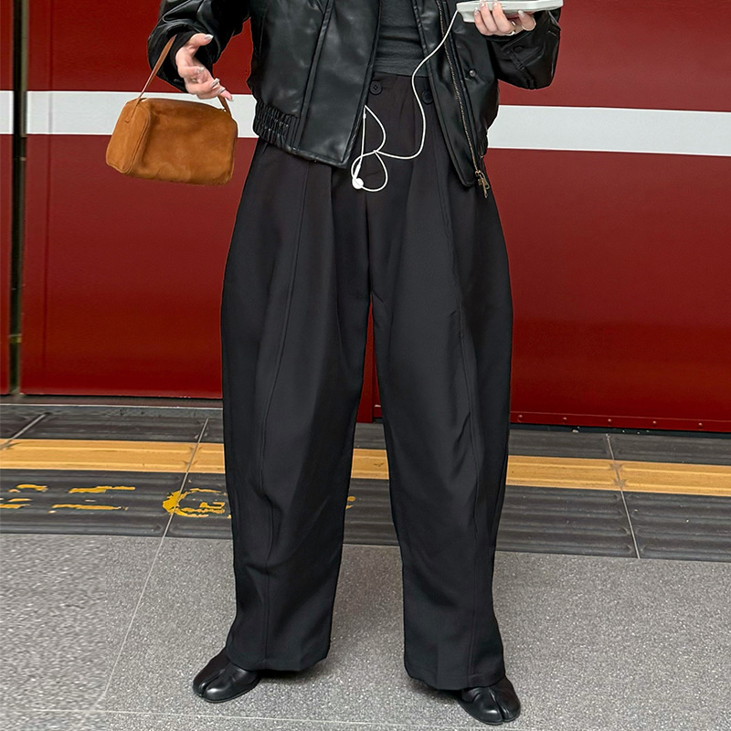 MMFISH时髦街头宽松压褶立体阔腿直筒休闲拖地西裤25K587