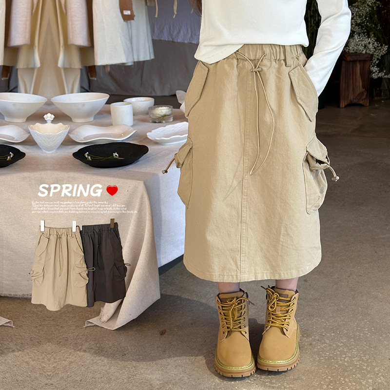 Rok Anak-anak Aimo Beibei Rok Pakaian Kerja Celana Saku Penutup Celah Katun Panjang Menengah Modis Anak Perempuan Sedang dan Besar Gaya Musim Semi & Musim Gugur