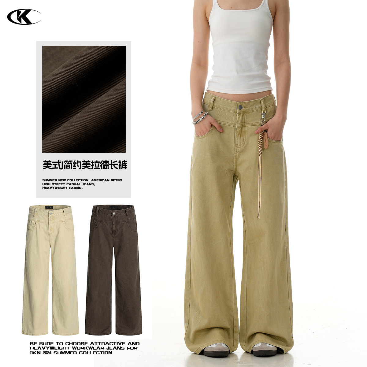 Celana kasual kerja retro Amerika 11KN untuk pria dan wanita, potongan longgar, melangsingkan, bersih, celana panjang lurus sederhana.