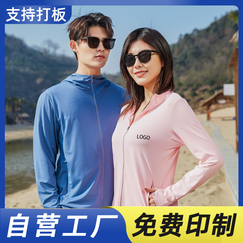 Mantel pelindung matahari pria dan wanita, pakaian bercetak LOGO gaya kulit gradien ringan dan bernapas musim panas luar ruangan