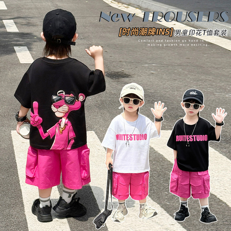 Setelan Pakaian Kerja Lengan Pendek Pakaian Musim Panas Anak Laki-laki Setelan Dua Potong Model Trendi Tampan Anak Model Baru 2025 Pakaian Anak-anak Gaya Barat Bayi