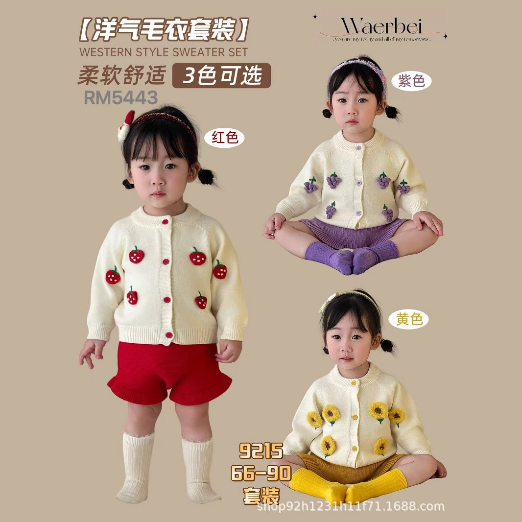 Set Sweater Kardigan Anak Kecil Bayi Perempuan Model Baru 2025 Set Celana Pendek Bayi Baru Lahir Gesper Tunggal Pita Kupu-Kupu Pabrik Perdagangan Luar Negeri