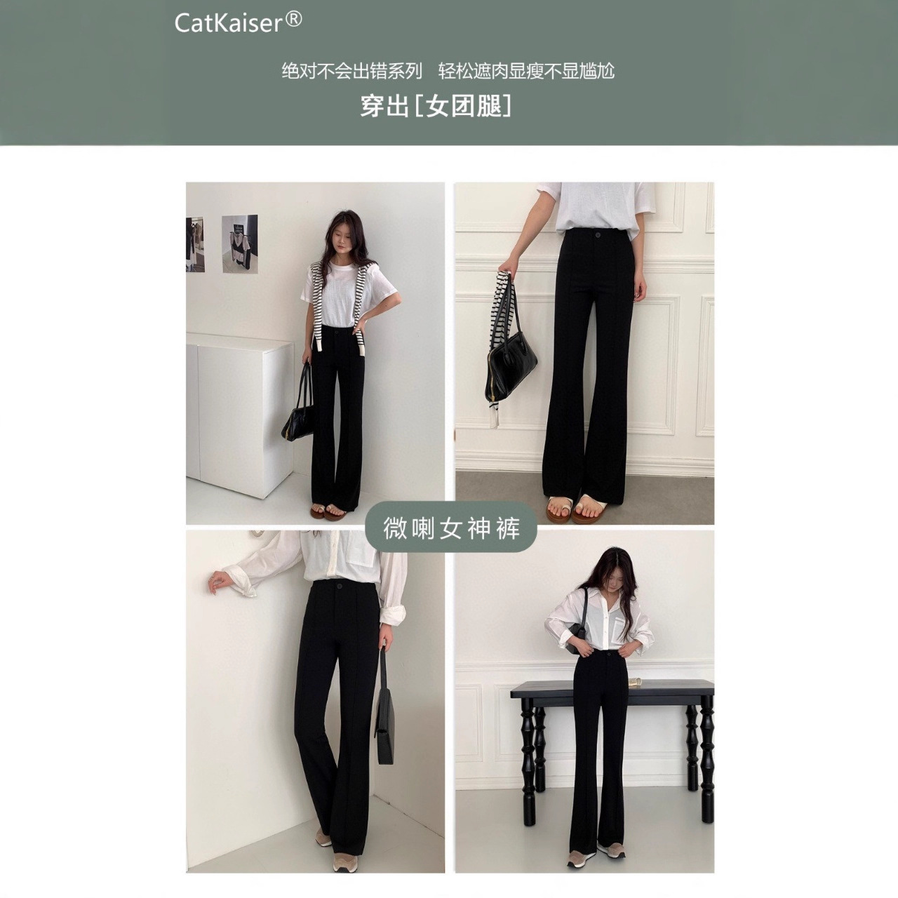CatKaiser微喇女神裤高腰修身西装休闲裤垂感显瘦韩版喇叭裤爆款1