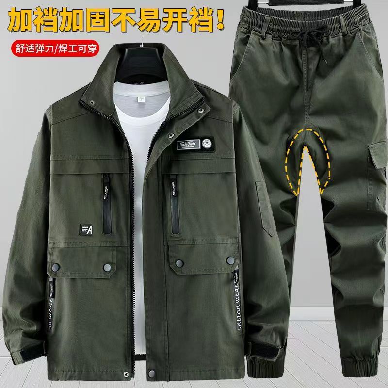 Pakaian kerja katun murni musim semi dan musim gugur lengan panjang las sinnato layanan perlindungan tenaga kerja menebal setelan perbaikan otomatis Pria