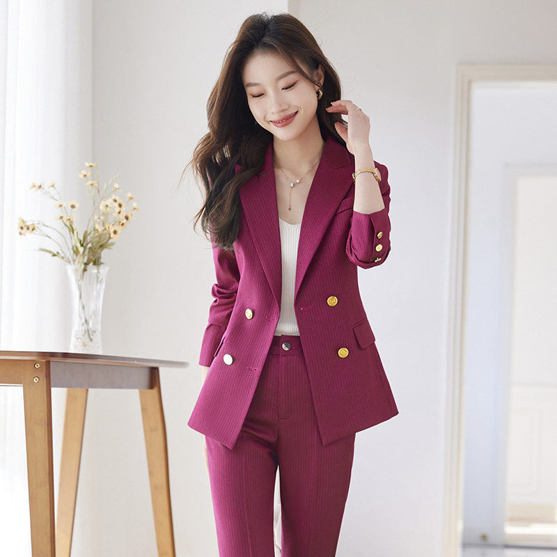 Setelan jaket bisnis wanita, pakaian kerja baru Musim Semi dan Gugur, pakaian formal tiga kancing