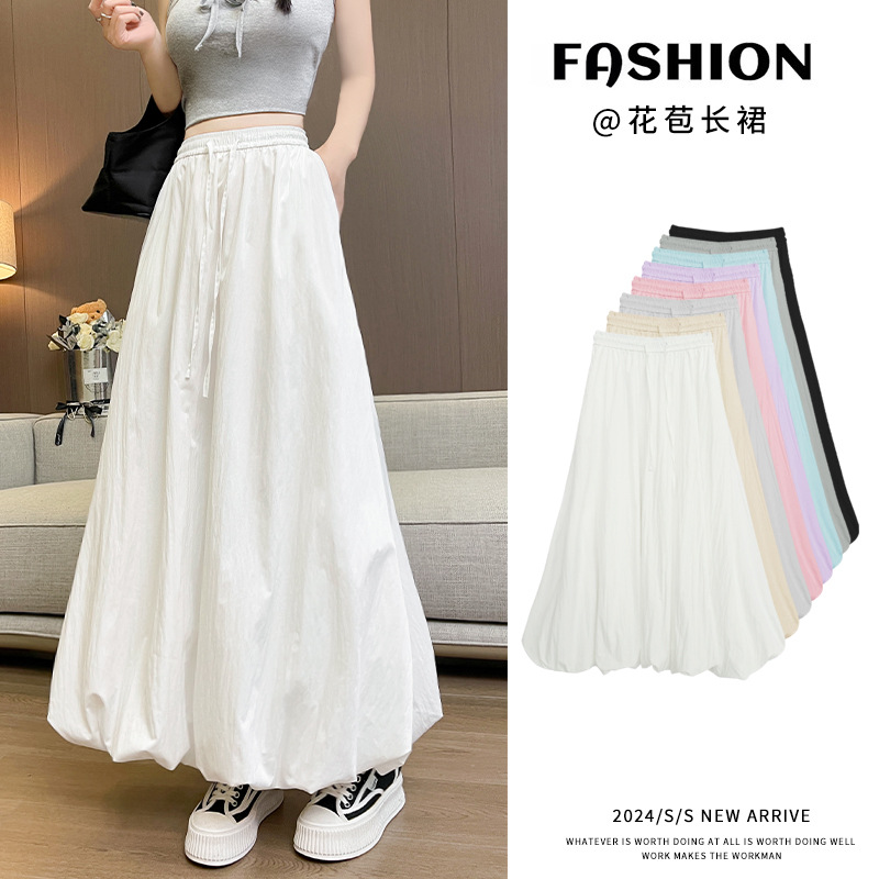 Rok bunga berbulu musim semi dan musim panas rok peralatan retro desain niche ramping pinggang tinggi cocok rok lentera a-line