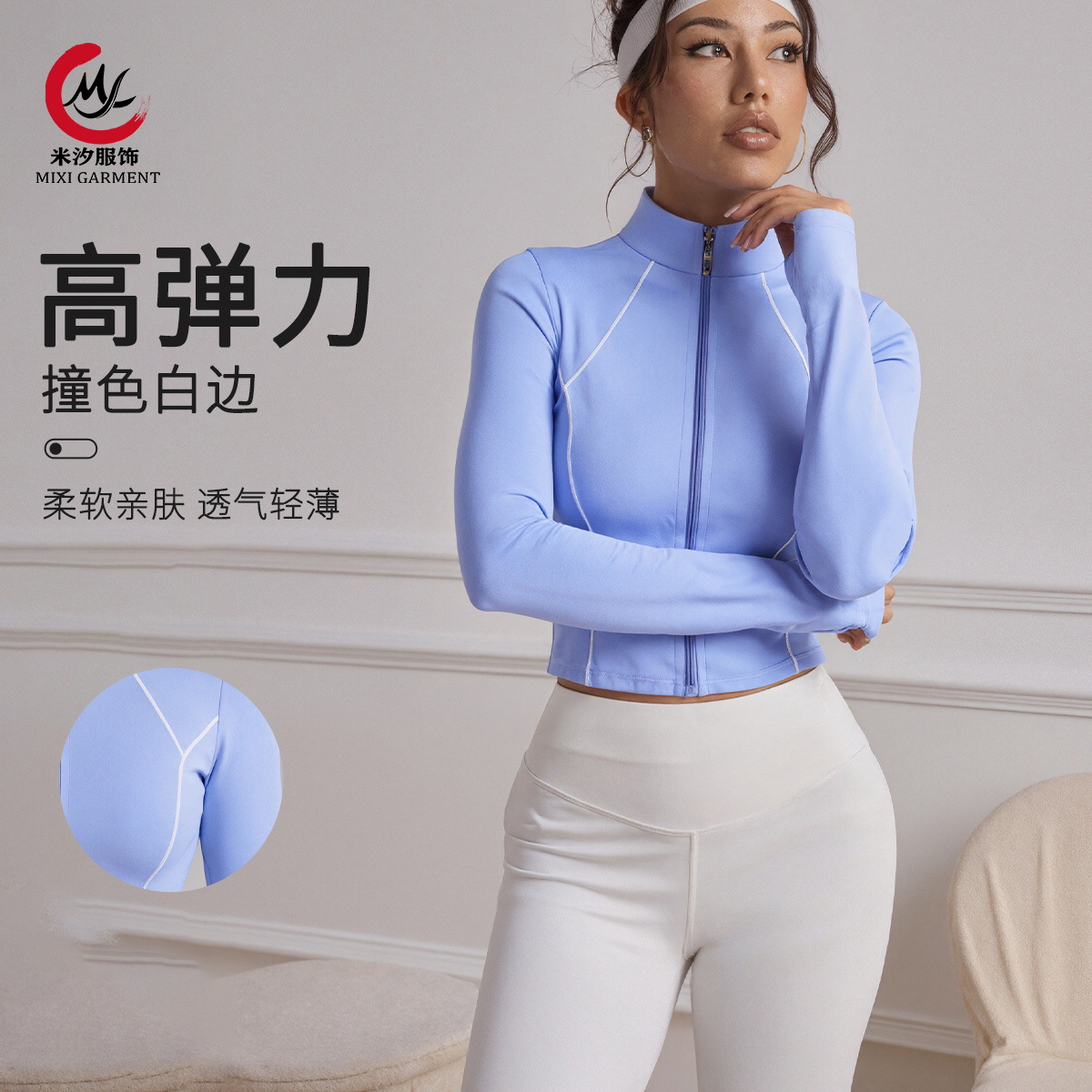米汐瑜伽健身服立领外套速干动感长袖夹克开衫衣休闲百搭健身上衣