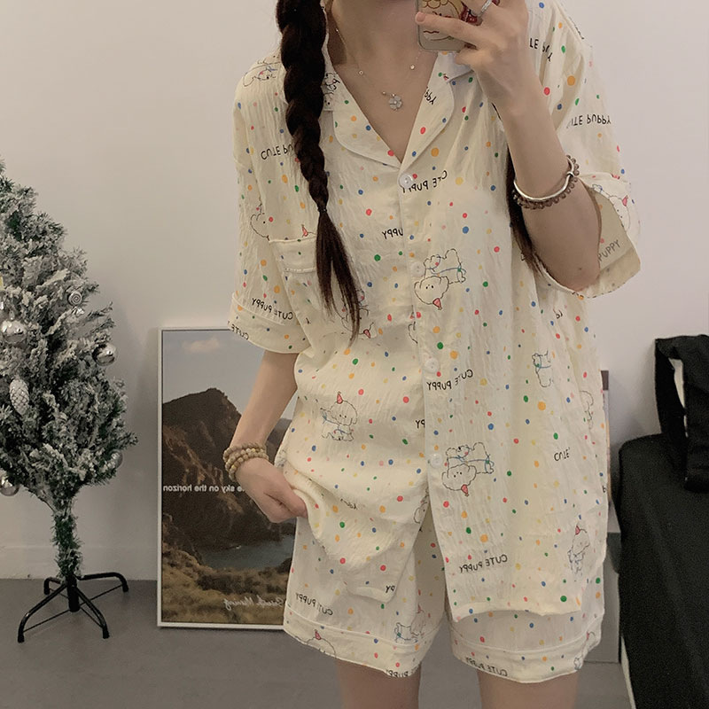 2025新款睡衣女夏季新款睡衣女云朵棉开衫短袖短裤卡通家居服套装