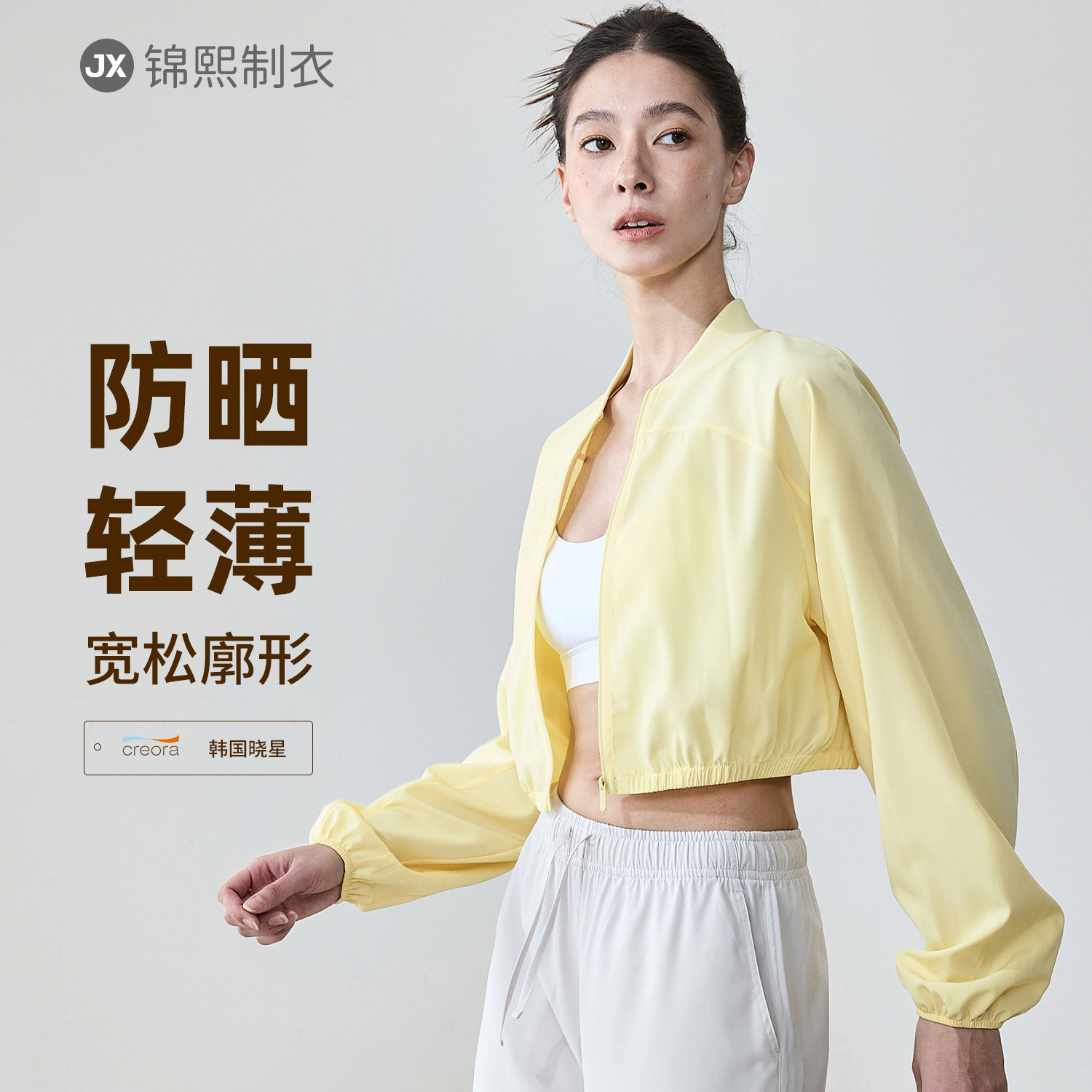 夏季薄款运动外套拉链开衫短款瑜伽上衣女棒球领收腰显瘦长袖