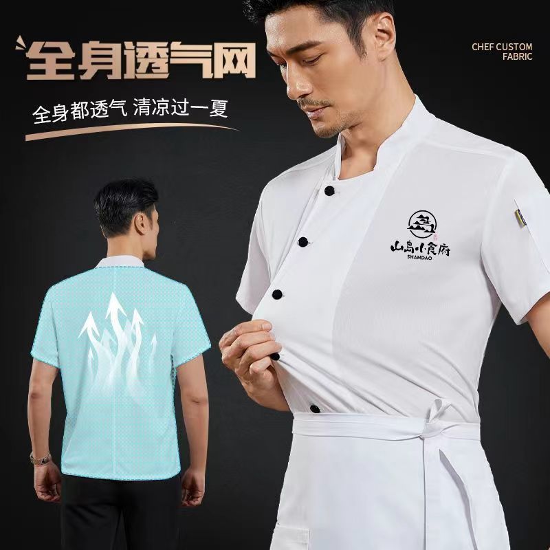 Pakaian koki lengan pendek, baju kerja musim panas bersirkulasi logo cetak kustom toko kue dapur restoran hotel katering