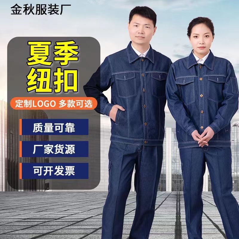 Pakaian kerja Denim tipis musim panas setelan pabrik bengkel tukang las listrik ritsleting listrik perlindungan tenaga kerja tahan aus