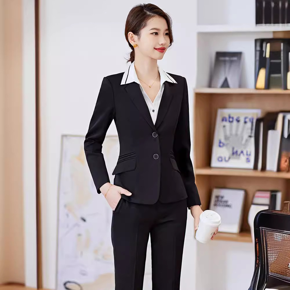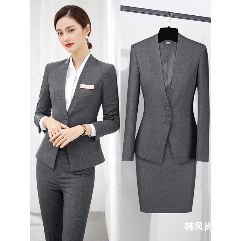 Setelan pakaian profesional wanita, setelan pakaian bisnis kasual bisnis formal hotel meja depan pakaian kerja Mode Musim Semi