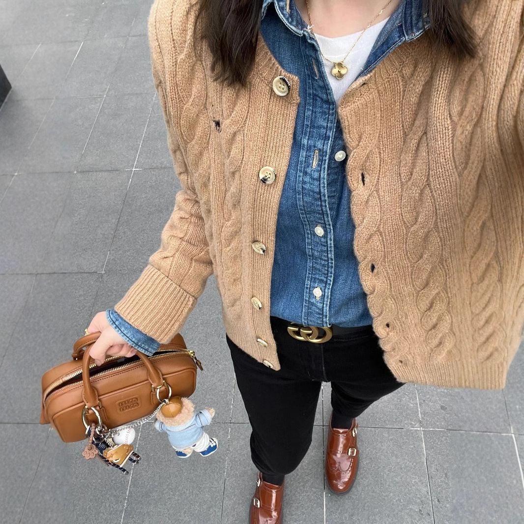 RL拉夫小马标开衫短款秋冬外套加厚刺绣麻花圆领针织衫毛衣女保罗