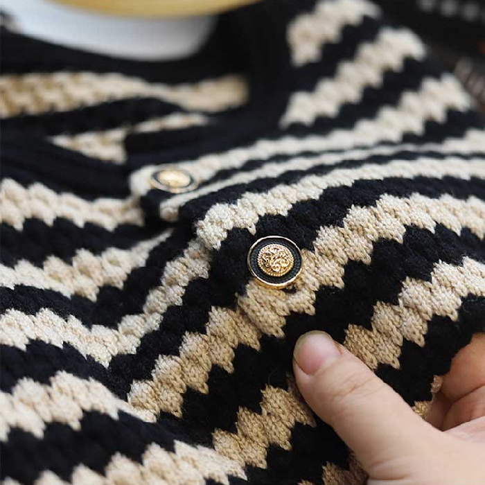 Outlet ~ mantel kardigan rajut wanita, jaket kardigan rajut leher bulat lengan panjang bergaris-garis elegan retro untuk musim gugur dan musim dingin
