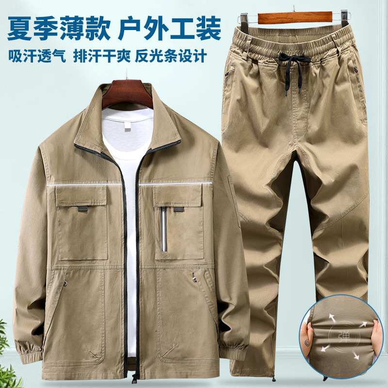 Setelan pakaian kerja katun pria, pakaian pelindung kerja tukang las tahan aus, kamuflase tipis musim panas