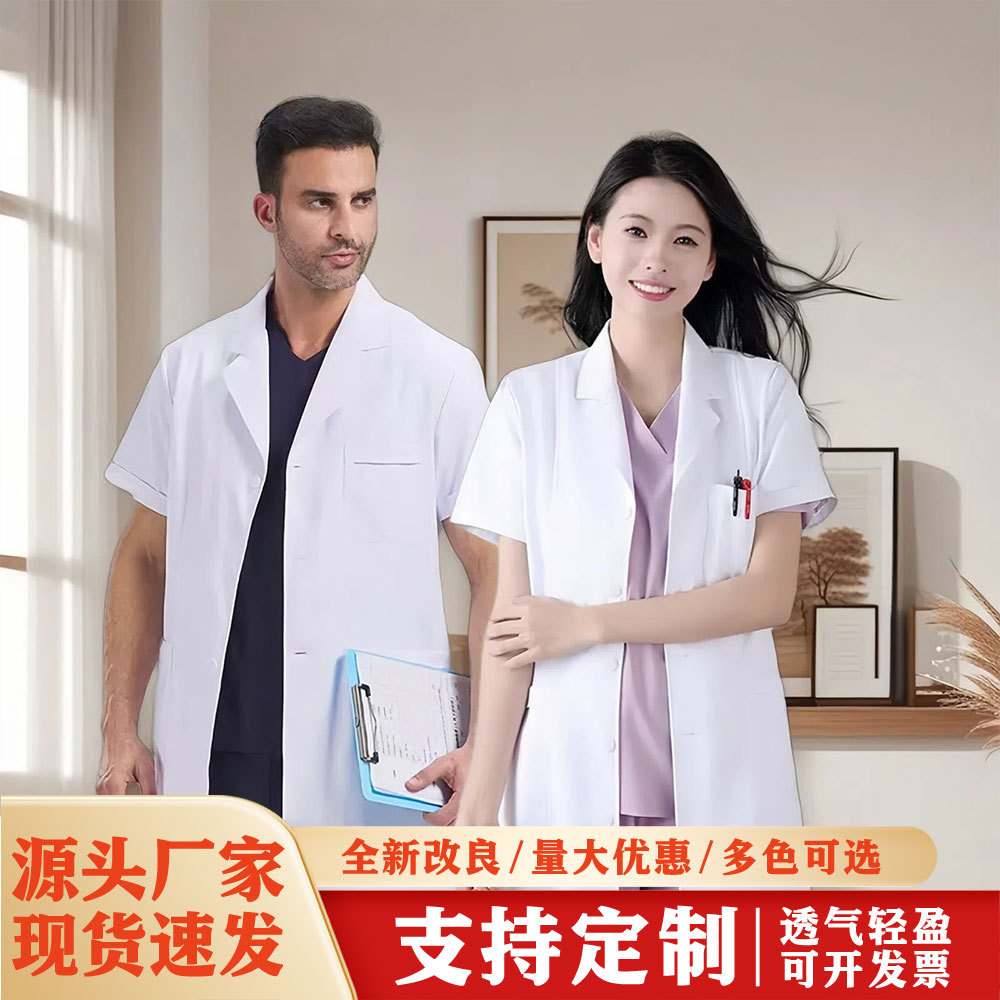 Pakaian Kerja Mulut Jas Putih Musim Semi dan Musim Panas Gigi Jas Putih Lengan Pendek Salon Kecantikan Pria Jas Putih Lengan Panjang Dokter Wanita Anti-statis