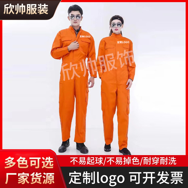 Jumpsuit katun poliester musim semi dan musim gugur pakaian kerja satu potong pakaian pabrik crew kapal pakaian perbaikan otomatis pekerja tahan debu pakaian pelindung tenaga kerja