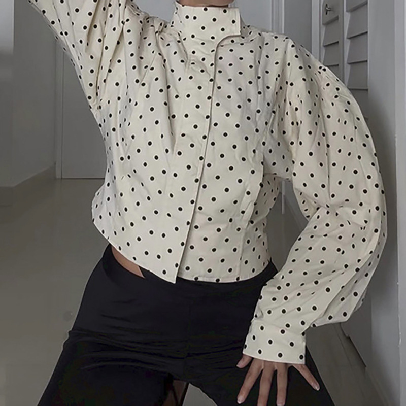 法式小众 2025早秋优雅时装款波点工装立领廓形收腰夹克外套25619
