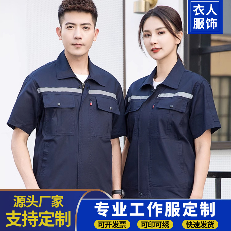 Setelan terusan lengan pendek tipis pria dan wanita, pakaian perbaikan mobil logistik bengkel pabrik perkakas antilembap lengan pendek tipis musim panas