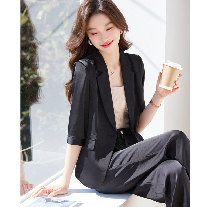 Setelan Jas Lengan Sedang Wanita Musim Panas Model Tipis Model Baru 2025 Jas Asam Asetat Berkelas Tinggi Jaket Kerja Profesional