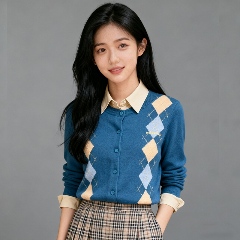 现货毛衣2025女秋外套通勤感针织衫简约复古菱格休闲长袖针织开衫