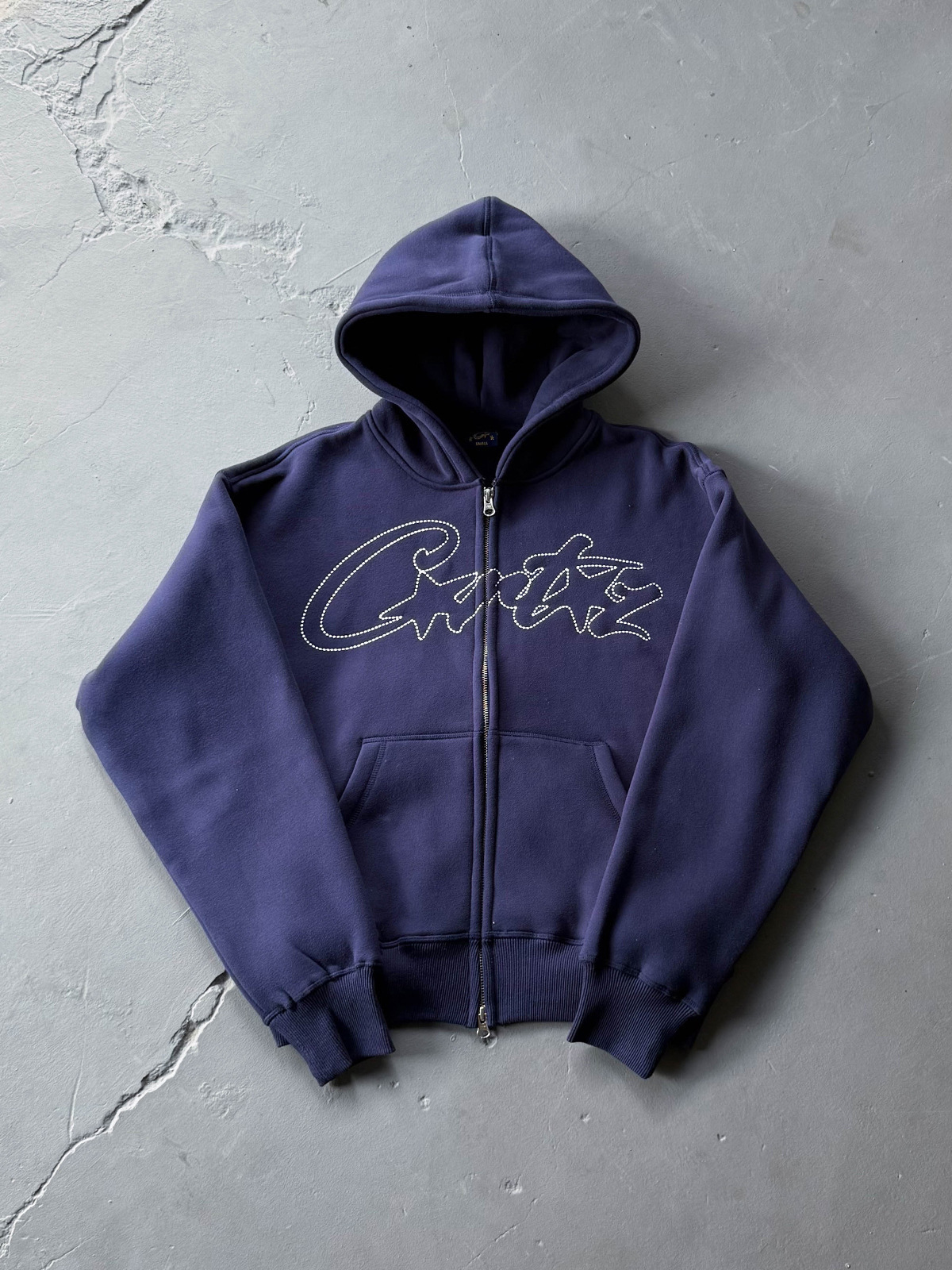 高品质美式街头嘻哈刺绣加绒拉链开衫连帽卫衣男潮牌休闲套装外套