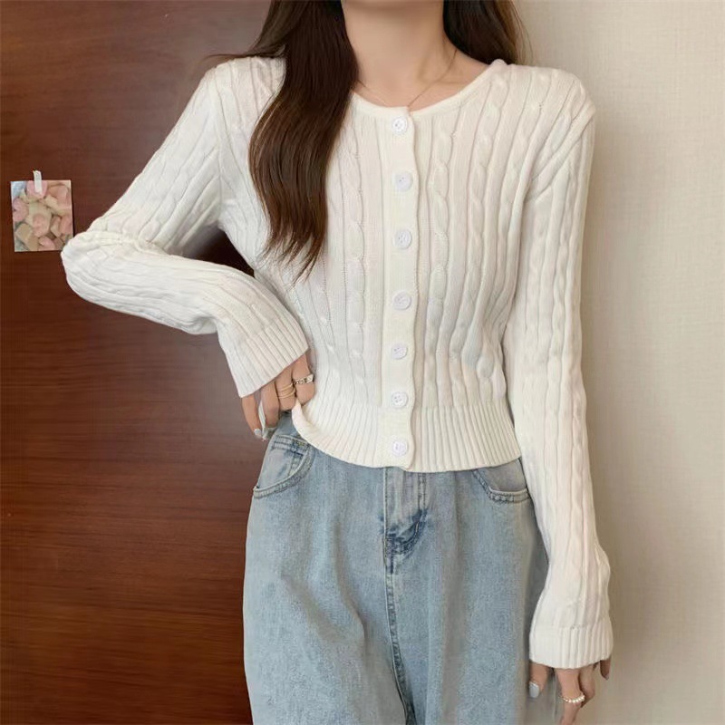 Sweater cardigan retro Perancis, atasan desain pelangsing ramping single-breasted, Musim Semi dan Gugur 2023