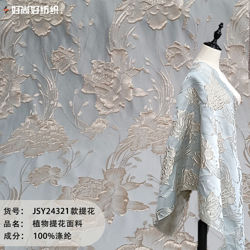 油画风蓝色立体廓形浮雕提花面料服装连衣裙包包外套设计师面料
