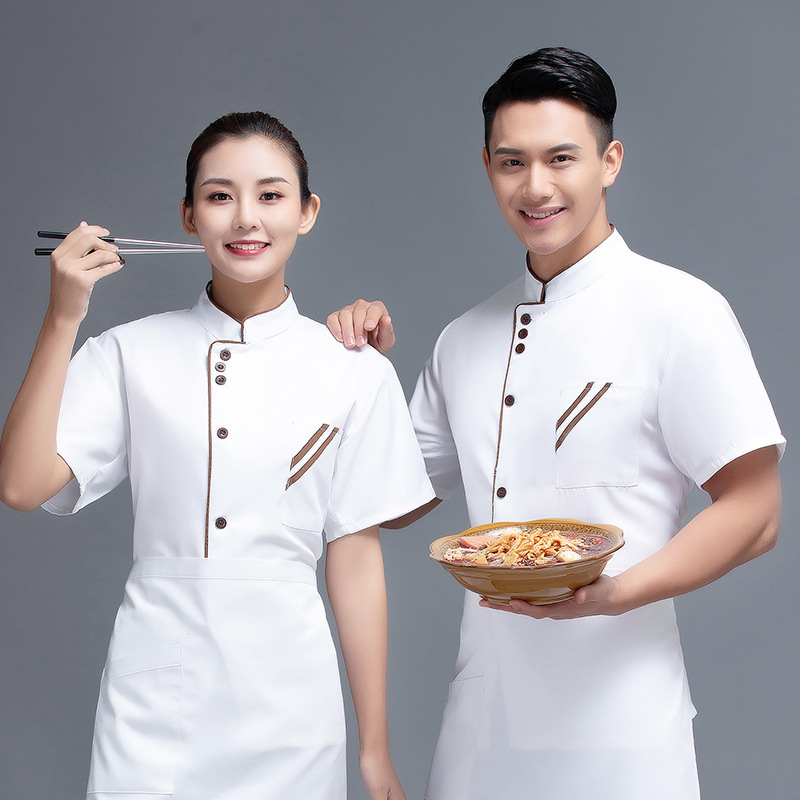 Pakaian koki lengan pendek pria, kustomisasi pakaian kerja dapur punggung tipis putih hotel makan restoran kantin musim panas
