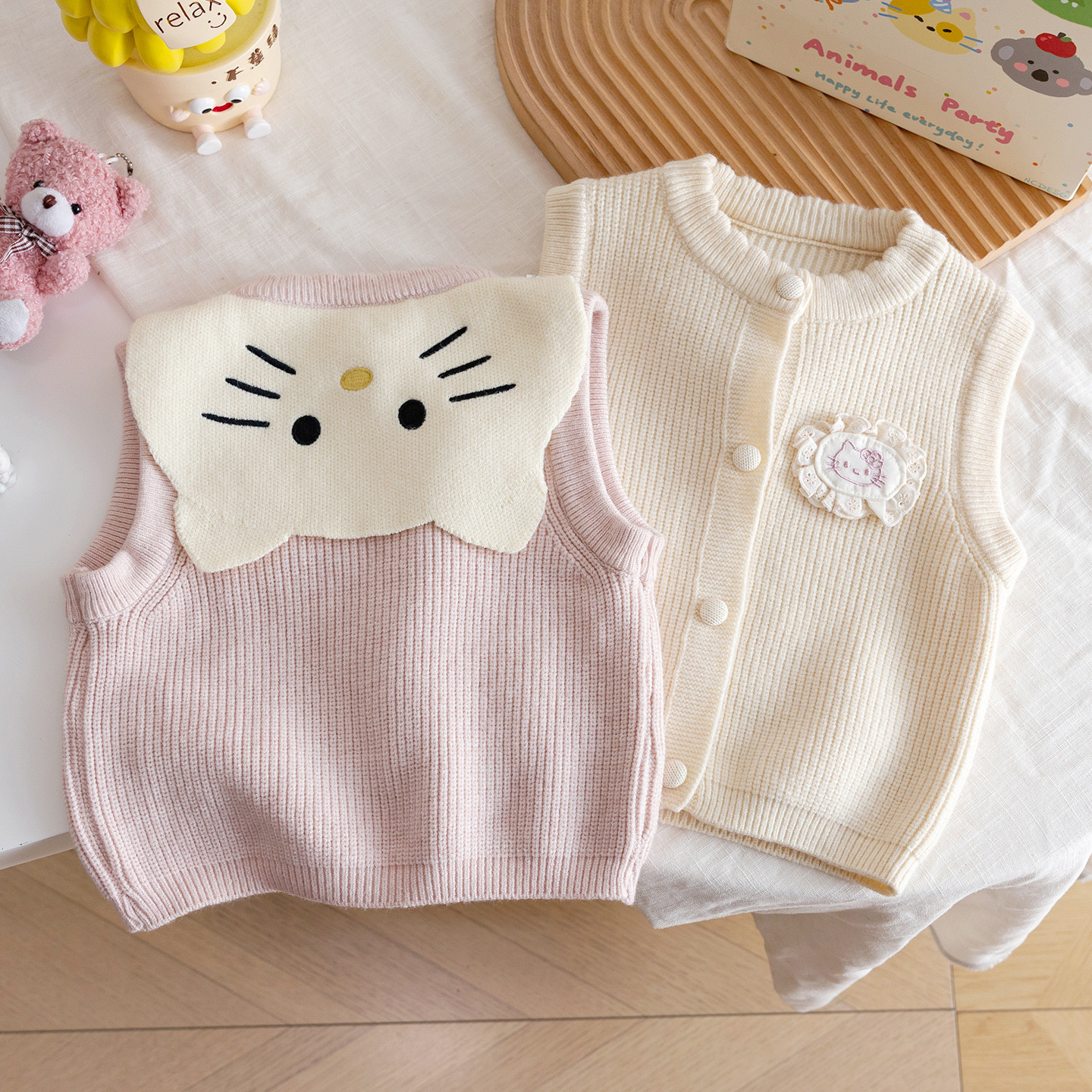 小女孩秋季卡通kt猫开衫背心2025新款韩范甜美可爱宝宝无袖马甲衣