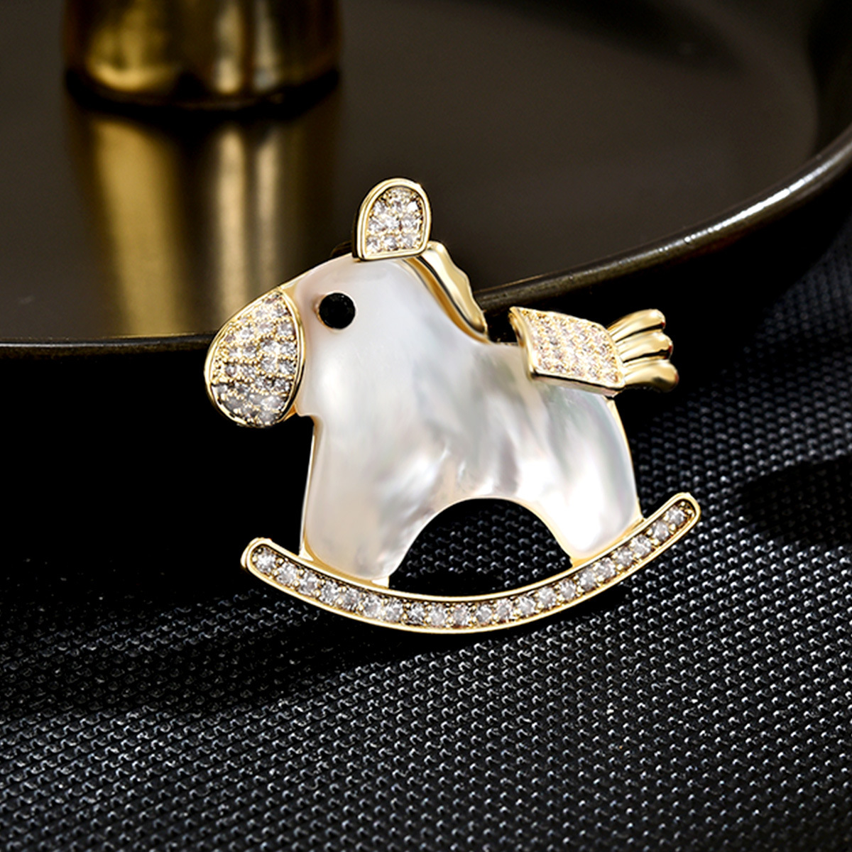 新款创意梦幻旋转木马胸针天然贝母高档百搭可爱开衫毛衣胸花别针