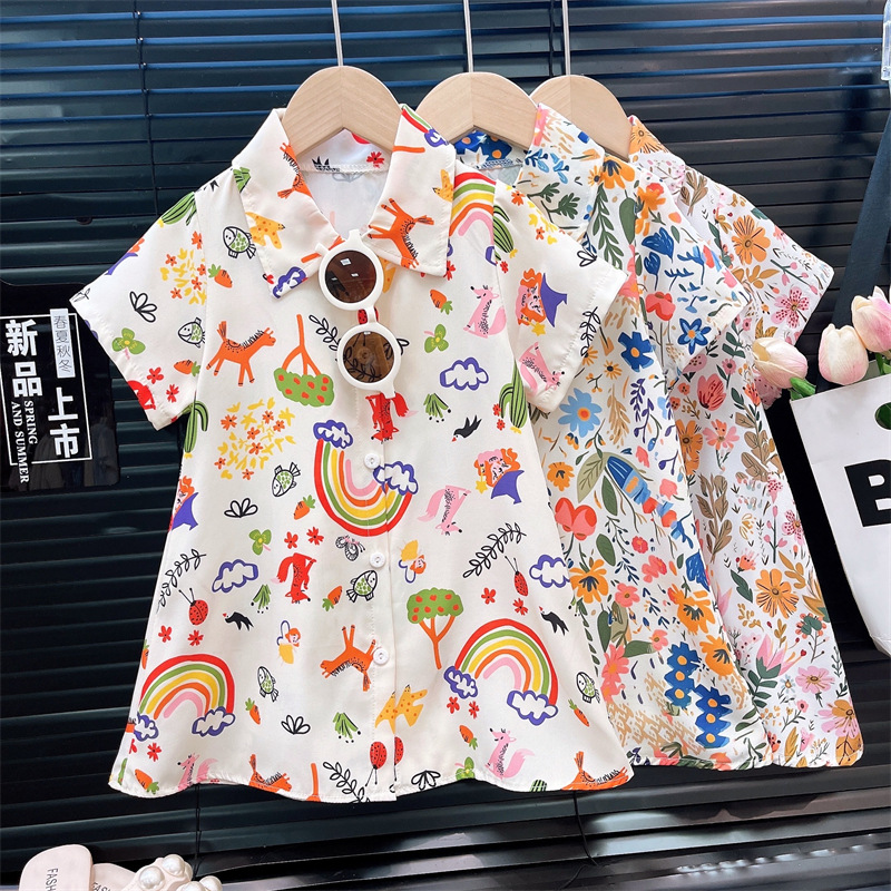 Rok Kemeja Lengan Pendek Anak Perempuan Musim Panas Gaun Kardigan Anak Perempuan Gaya Barat Model Baru Musim Panas Rok Anak-anak Grosir