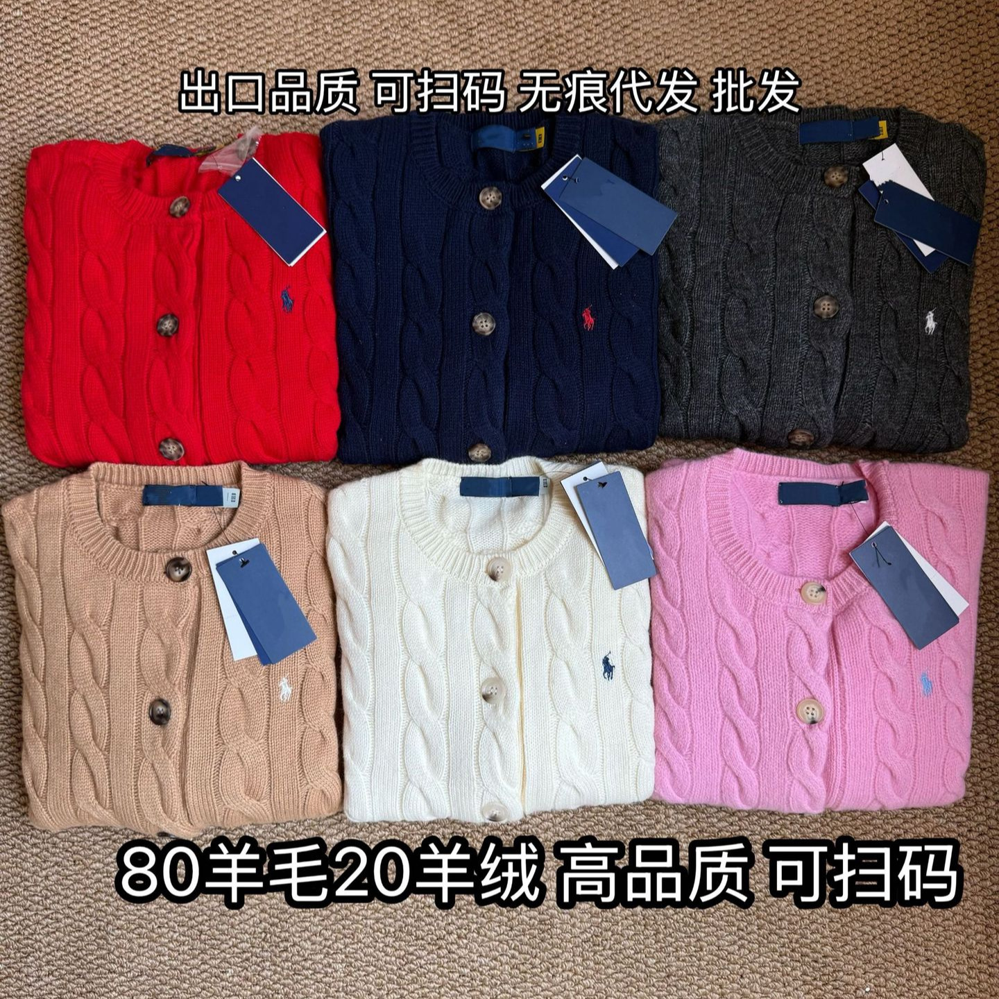 PL拉夫小马刺绣新款80羊毛20羊绒羊毛开衫秋冬绞花老钱风羊毛开衫