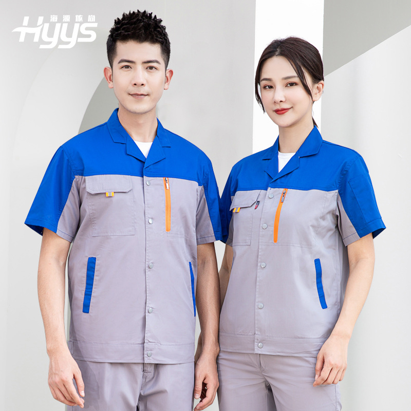 Pakaian kerja pria, musim panas lengan pendek pakaian kerja perbaikan otomatis pakaian kerja seragam teknik pakaian pabrik disesuaikan pakaian pemeliharaan teknik cetak atas