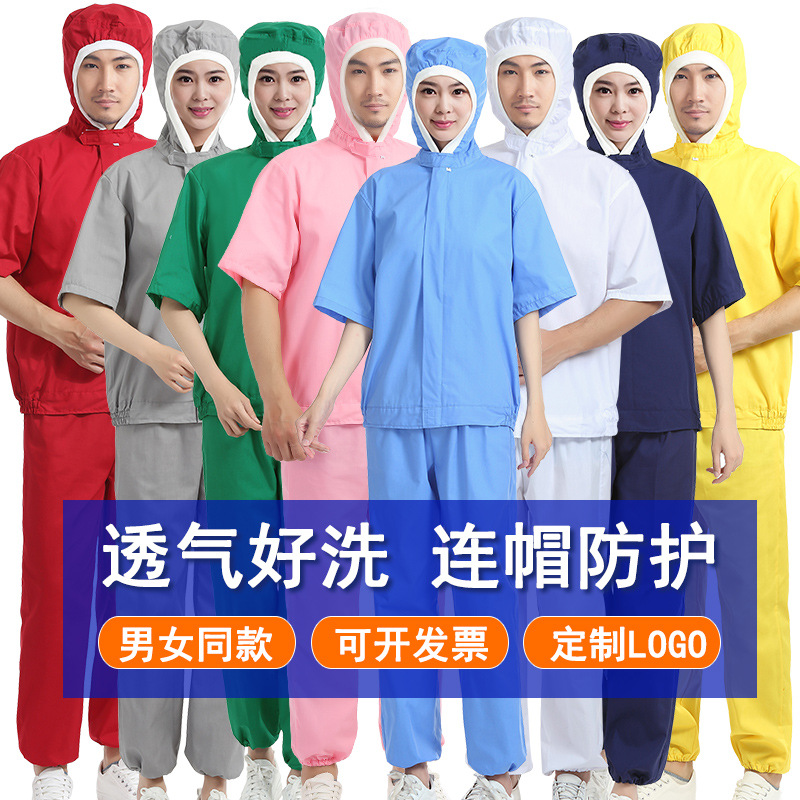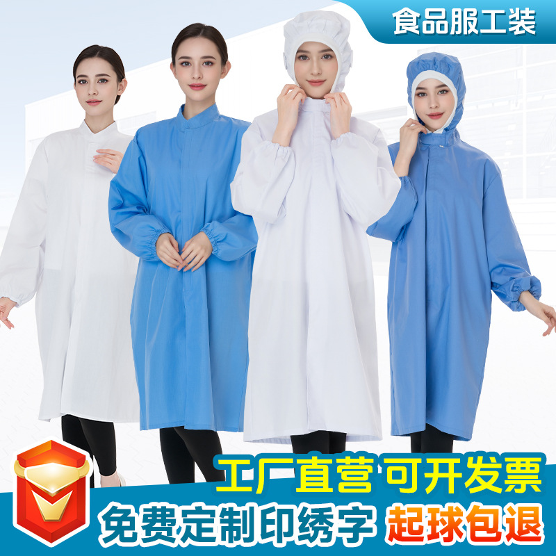 Baju kerja makanan dengan setelan topi pria dan wanita bengkel produksi pengolahan pabrik wanita putih logo baju bertudung antilembap