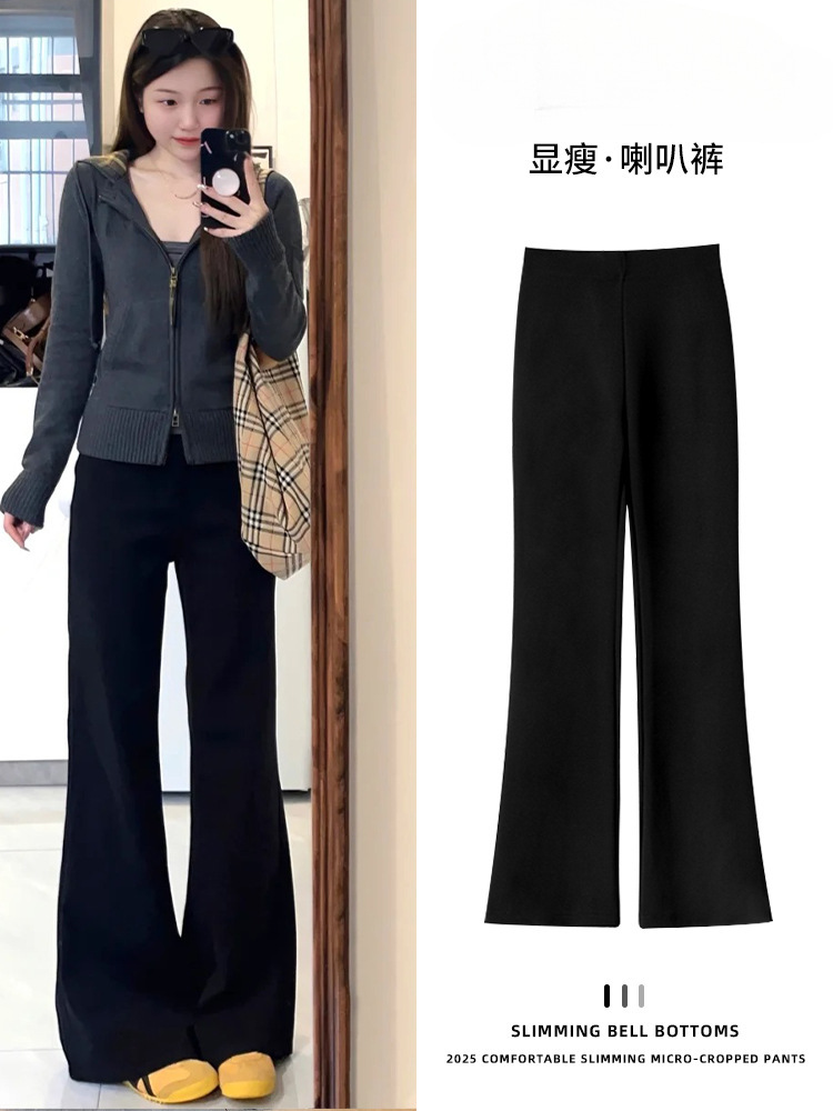 黑色微喇西装裤女秋2025新款小个子高腰显瘦垂感休闲直筒喇叭裤