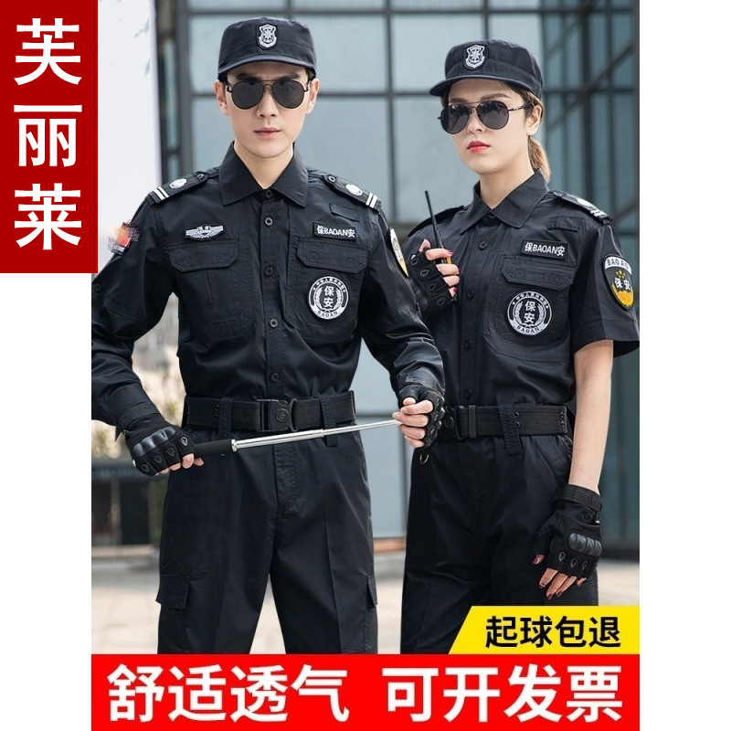 Pakaian kerja keamanan Musim Semi dan Musim Gugur, pakaian keamanan set lengkap seragam musim dingin setelan pria hitam pakaian latihan pelatihan khusus