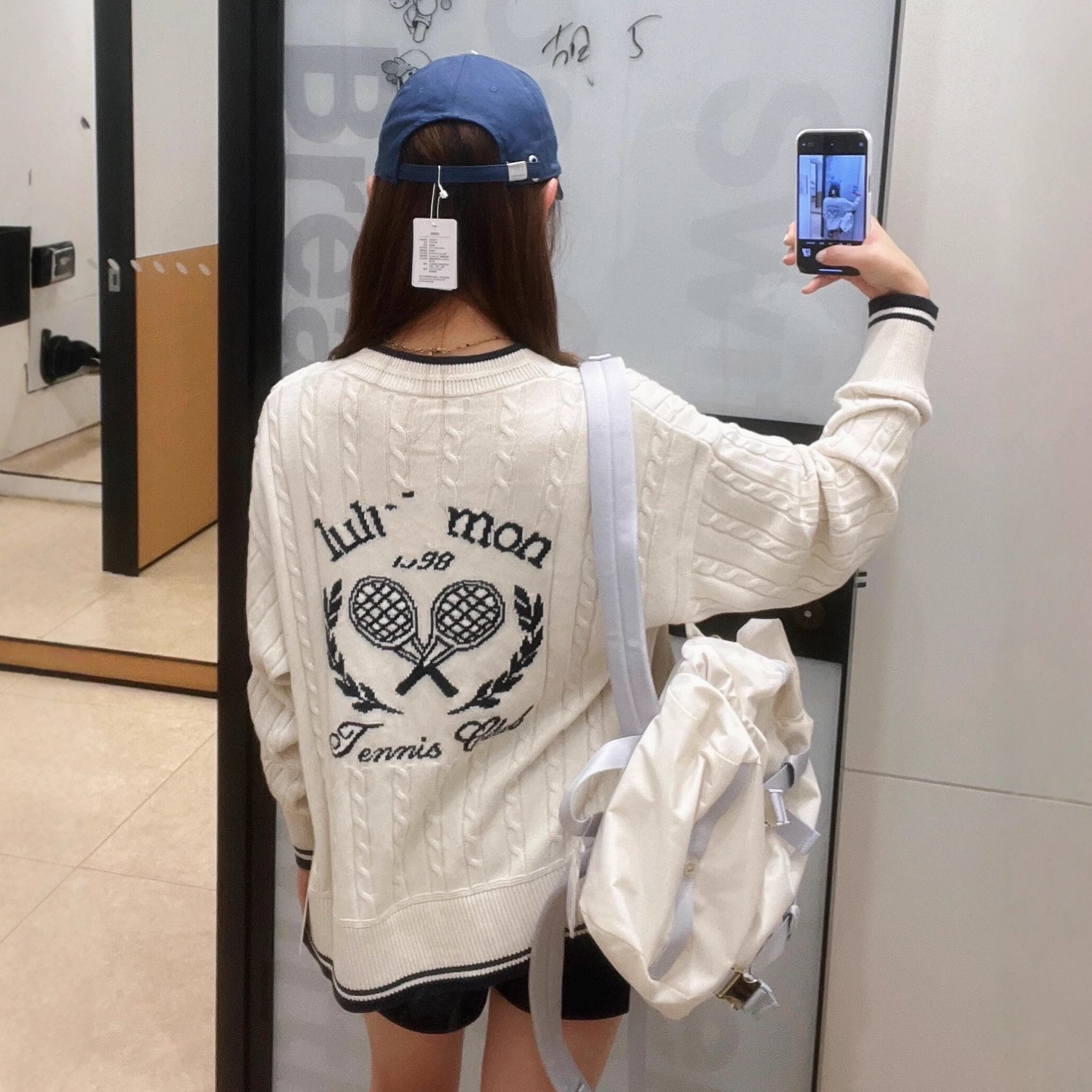 柜柜版本LU家同款V领针织绞花毛衣后背针织logo刺绣长袖开衫毛衣