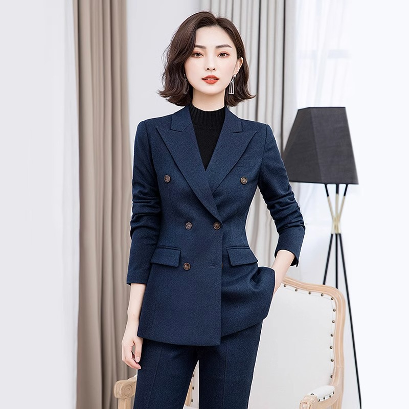 Setelan pakaian formal elegan wanita, pakaian kerja manajer hotel dua potong, mantel formal elegan musim gugur dan musim dingin untuk perempuan