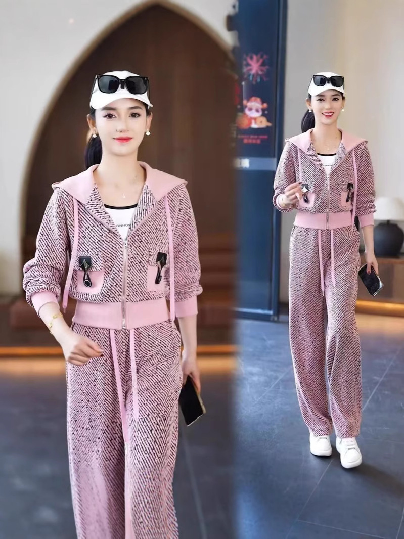 时尚休闲运动套装女2025春季新款连帽开衫外套阔腿裤显瘦两件套潮