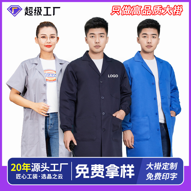 Gaun putih lengan panjang untuk pria, gaun terusan berkancing adem dengan lengan panjang, gaun putih pelajar medis bengkel produksi