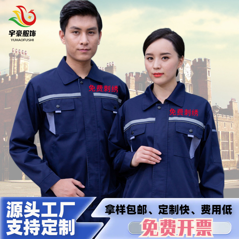 Pakaian kerja pria, baju kerja lengan panjang Pria Musim Semi dan Musim Gugur, pakaian disesuaikan/Dibuat tahan aus, lokasi konstruksi, strip reflektif, pakaian pelindung kerja