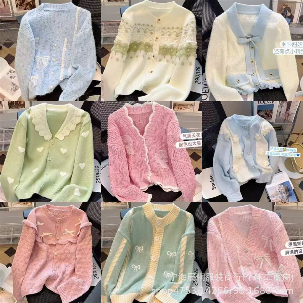 韩系可爱风春季女式开衫针织衫外套小清新女装毛衣小开衫直播货源