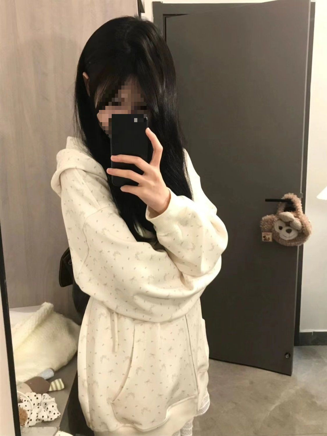 碎花连帽卫衣女夏秋oversize薄款外套港味chic宽松慵懒开衫上衣